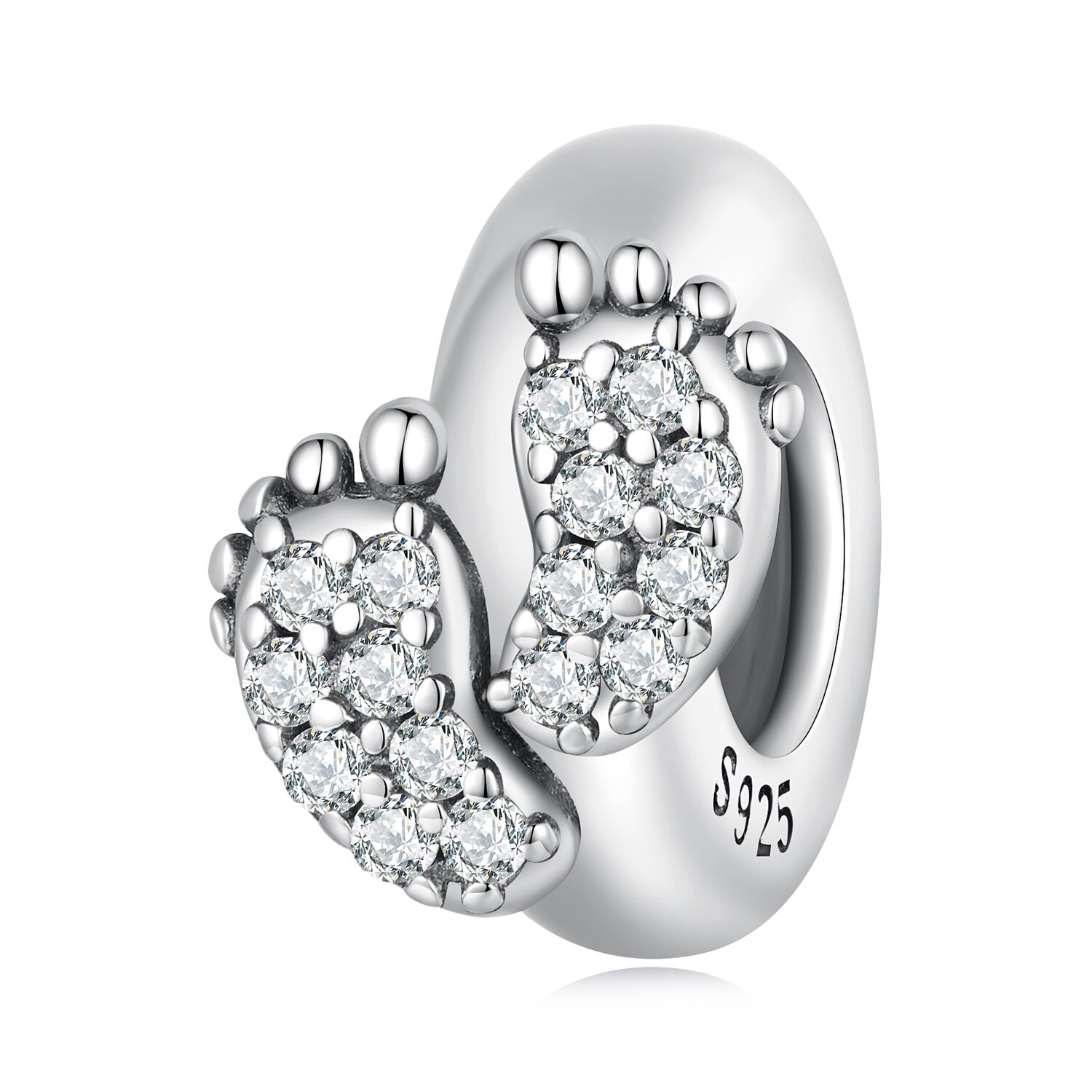 Talisman din argint Baby Crystal Soles. Mărimi Material: Argint 925 Placaj: Rodiu Dimensiuni: 7,10 mm x 7,50 mm x 1,70 mm Greutate aprox: 1,38 g Tip talisman: Charm Pietre: Zirconiu