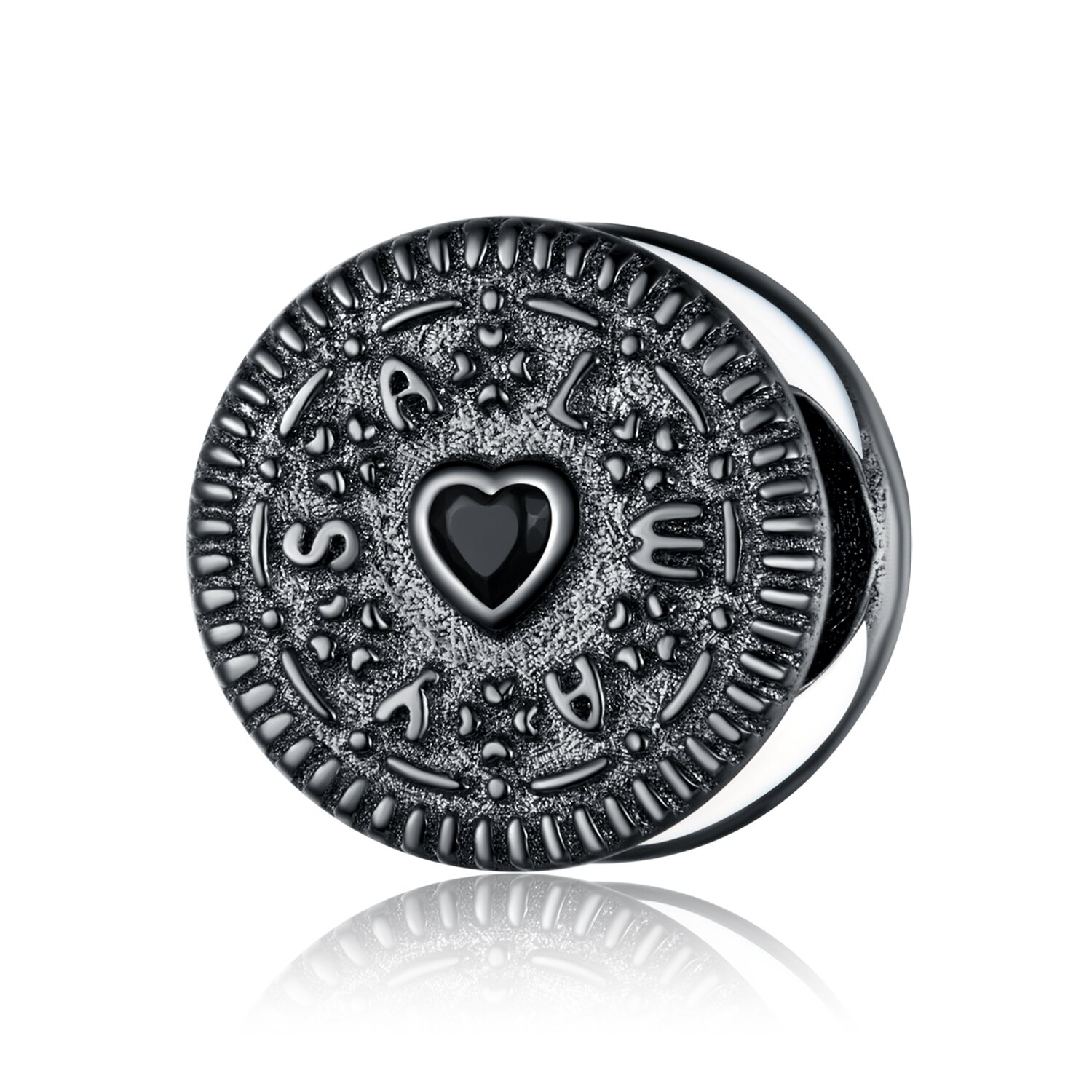 Talisman din argint Black Hearted Biscuit. Material: Argint 925 Placaj: Rodiu Diametru: 8.6 x 8.1 x 7.5 mm Greutate aprox: 2.04 g Tip talisman: Charm Pietre: Zirconiu