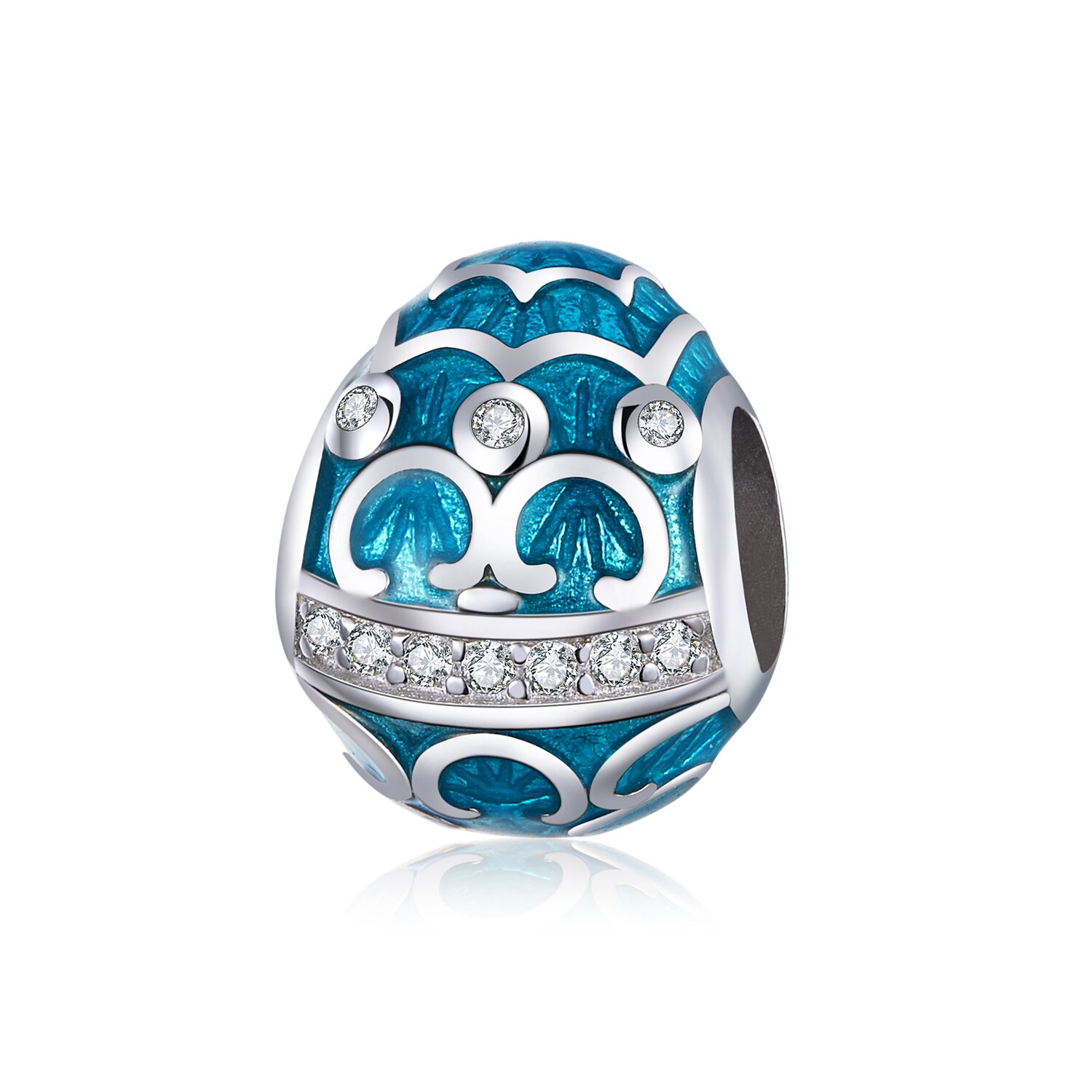 Talisman din argint Blue Crystal Egg. Material: Argint 925 Placaj: Rodiu/ Email Dimensiuni: 11.1 x 8.7 x 9.1 mm Tip talisman: Charm Pietre: Zirconiu