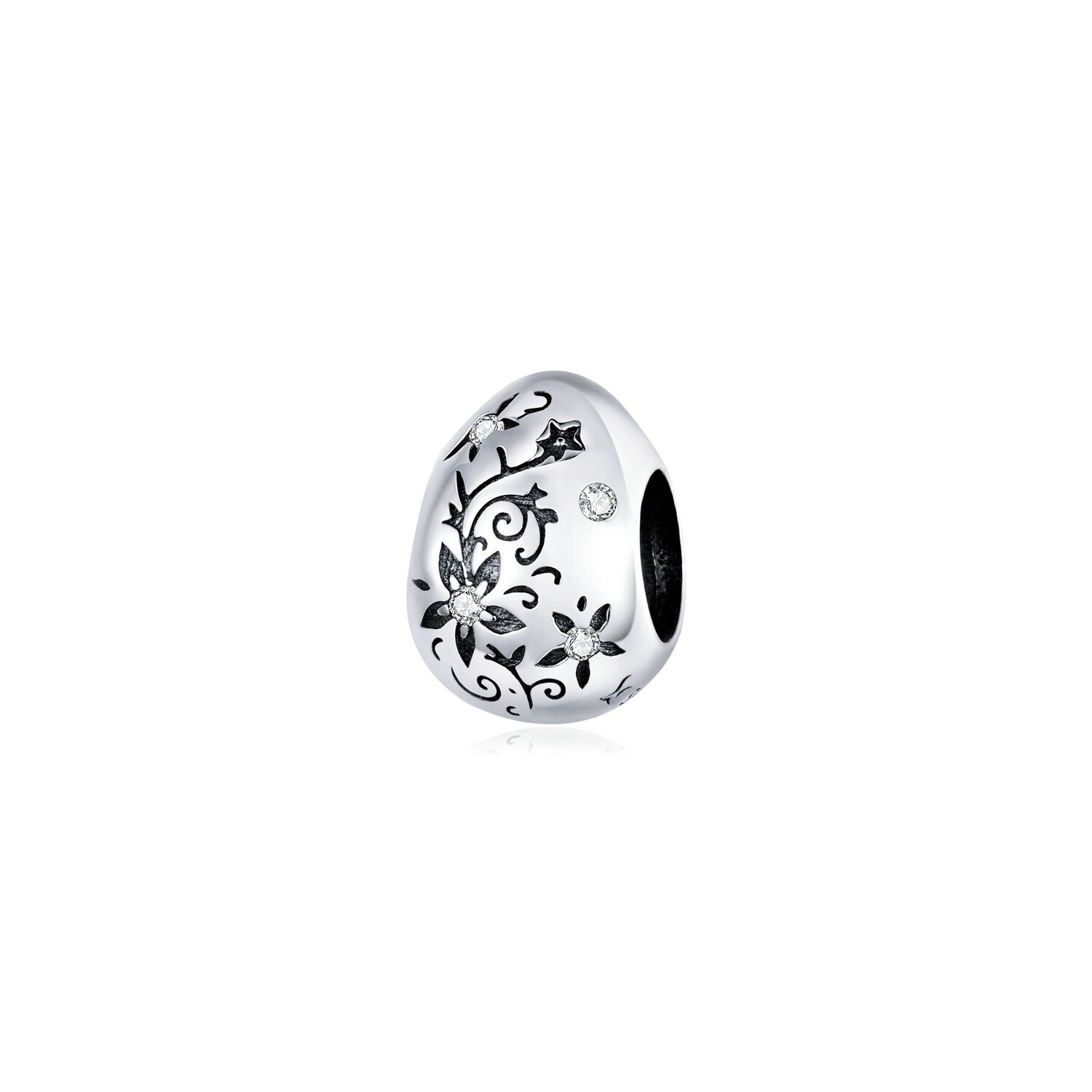 Talisman din argint Fashion Egg. Mărimi Material: Argint 925 Placaj: Rodiu Dimensiuni: L x l x g=10mm x 8mm x 7mm Greutate aprox:1.04g Tip talisman: Charm Pietre: Zirconiu