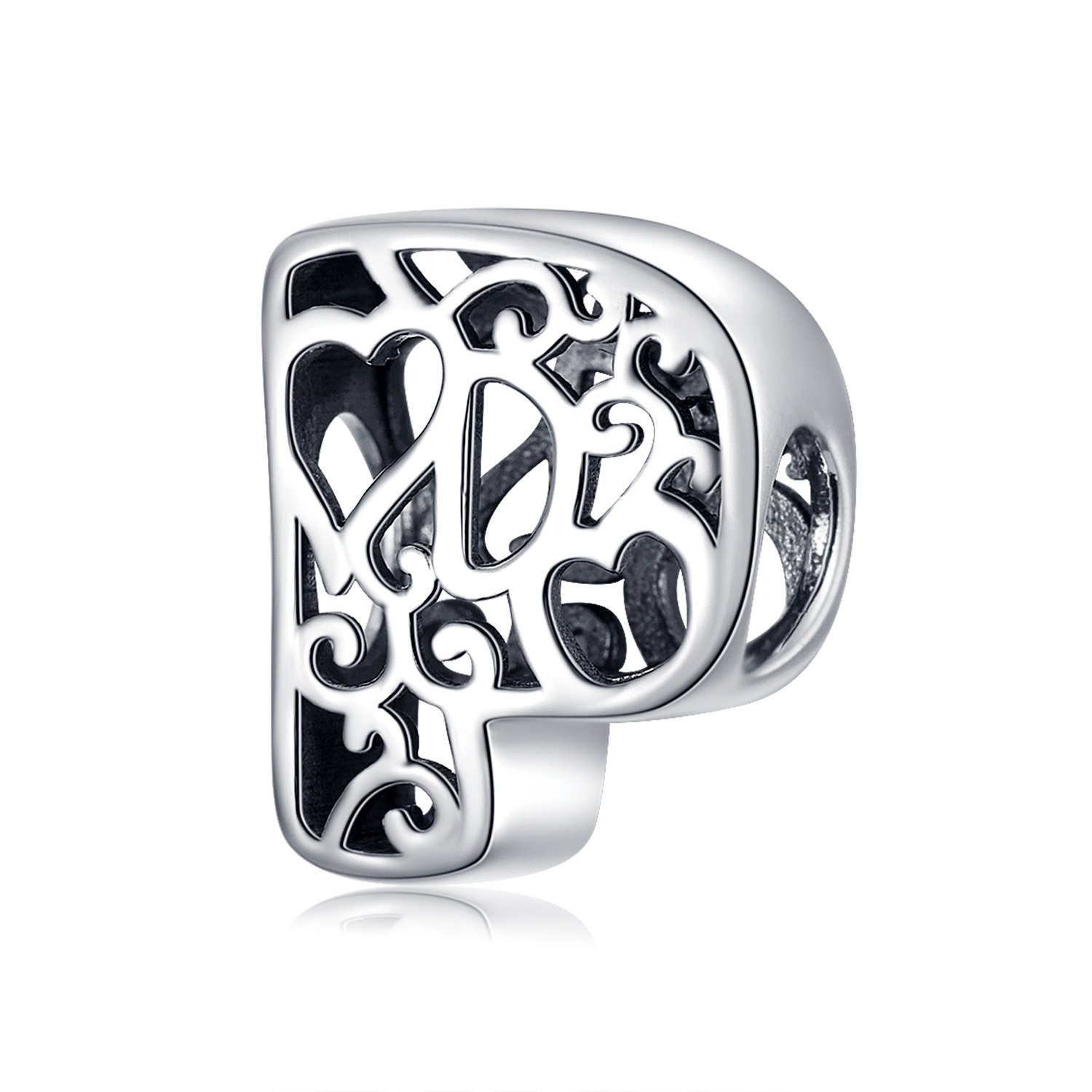 Talisman din argint In Love with Letter P. Mărimi Material: Argint 925 Placaj: Rodiu Dimensiuni: L x l x g= 13mm x 10mm x 8mm Greutate aprox: 2.16g Tip talisman: Charm Pietre: Fara pietre