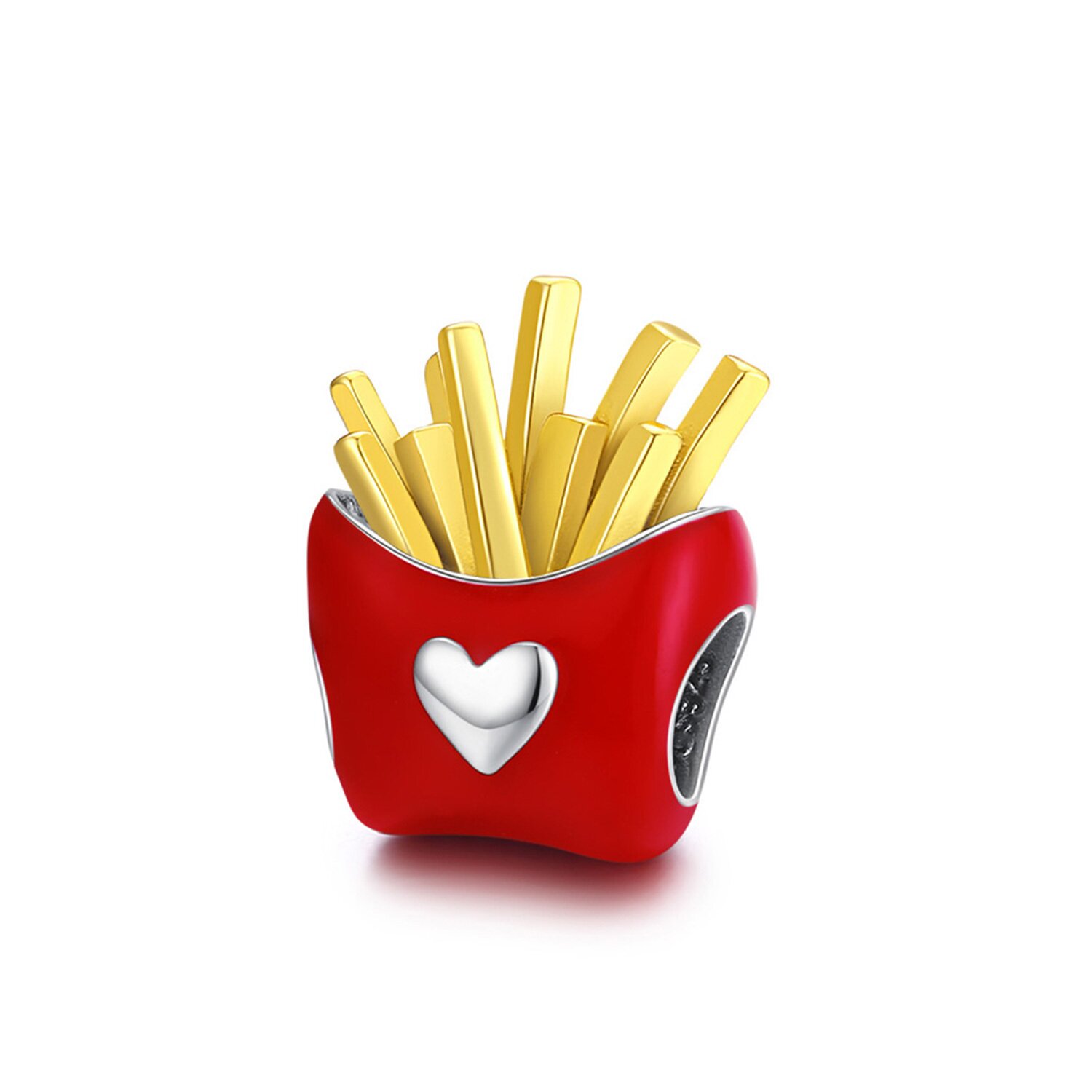 Talisman din argint Love for Fries. Material: Argint 925 Placaj: Rodiu/ Email Dimensiuni:  14.6 X 12 mm Tip talisman: Charm Pietre: Fara pietre
