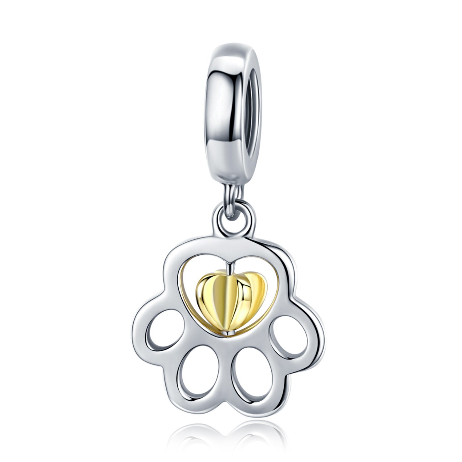 Talisman din argint Paw Spinning Gold Hear. Material: Argint 925 Placaj: Rodiu/ Aur 14K Dimensiuni: 21.85 X 11.78 mm Tip talisman: Pandantiv Pietre: Fara pietre
