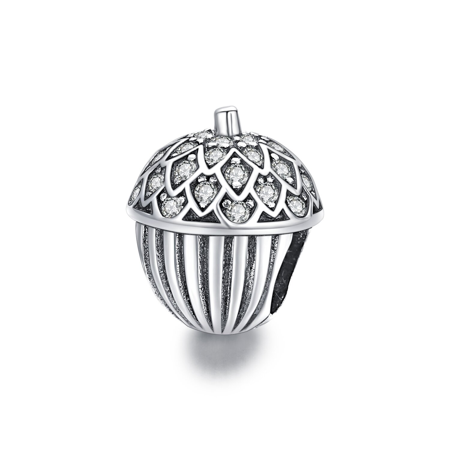 Talisman din argint Sparkling Acorn. Material: Argint 925 Placaj: Rodiu Dimensiuni: L x l x g= 10mm x 8mm x 8mm Greutate aprox: 1.27g Tip talisman: Charm Pietre: Zirconiu
