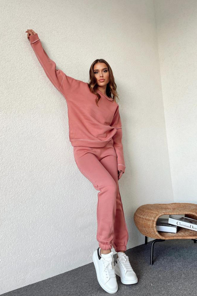 Trening vatuit Aliana, din bumbac, cu guler barcuta si cusaturi evidentiate, Roz somon
