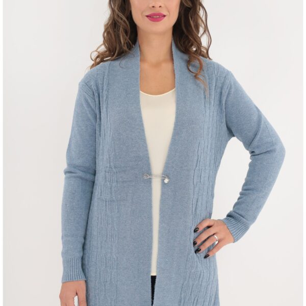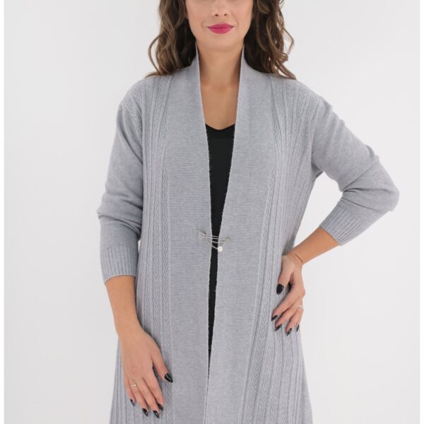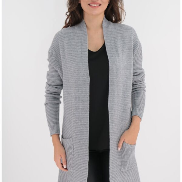 Cardigan gri-deschis tricotat cu buzunare aplicate