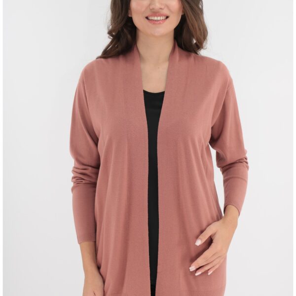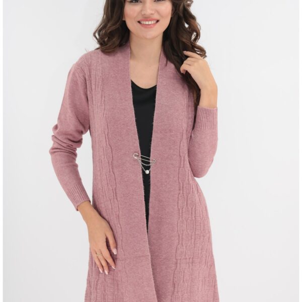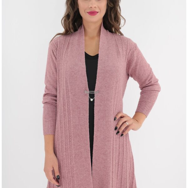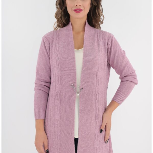 Cardigan roz-prafuit tricotat cu model in relief si brosa