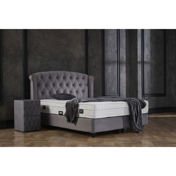 Pat tapitat CAMEL, 140×200 cm, lada depozitare, bej deschis