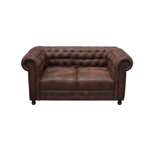 Canapea CHESTERFIELD fixa, 2 locuri, cu arcuri, maro inchis, 168x90x80 cm