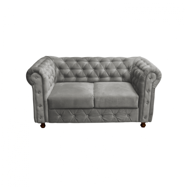 Canapea CHESTERFIELD fixa, 2 locuri, cu arcuri, gri, 168x90x80 cm