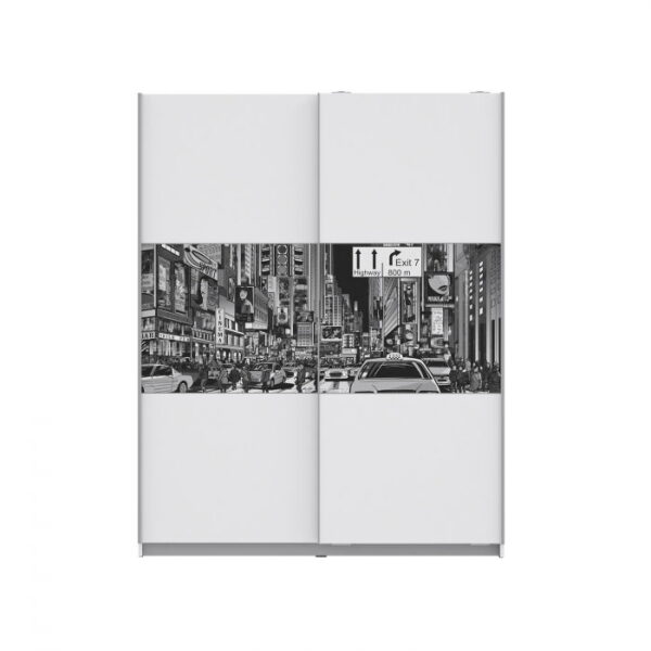 Dulap TIGO, cu usi glisante, 5 rafturi, bara haine, alb, 150x61x191 cm