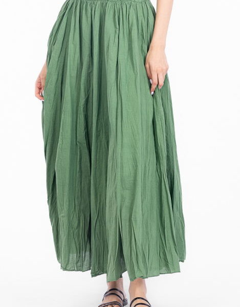 Fusta lunga, ampla, clos, din bumbac creponat, kaki
