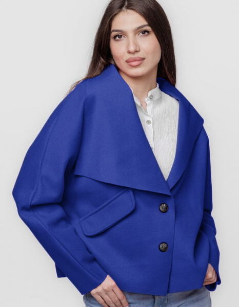 Jacheta trendy stil poncho cu curea, din stofa albastra