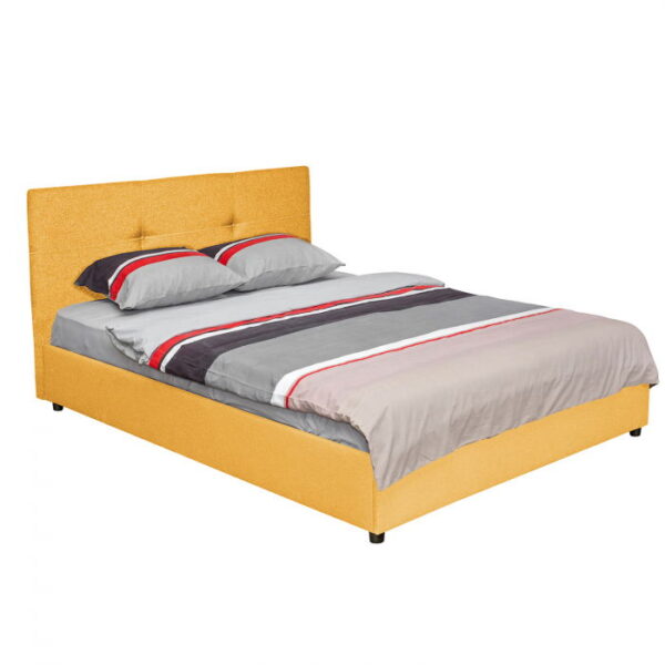 Pat tapitat LUXOR, 140×200 cm, cu sezut rabatabil, spatiu depozitare, galben