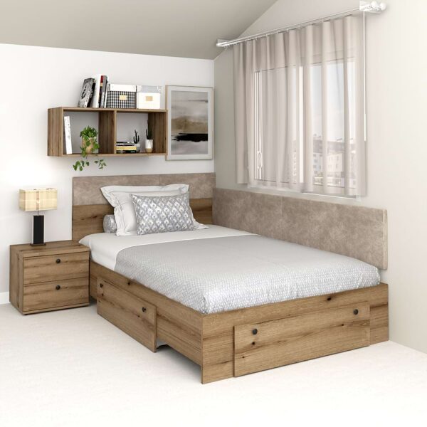Pat colt de o persoana AMBRO, 120×200, 2 sertare, Stejar