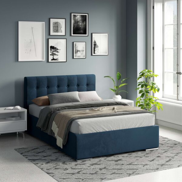 Pat tapitat GEORGIA PRO, 140×200, H116, somiera, catifea Albastra