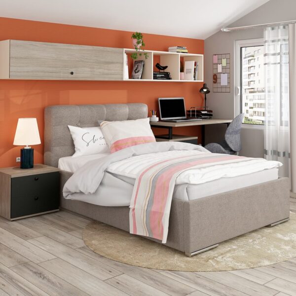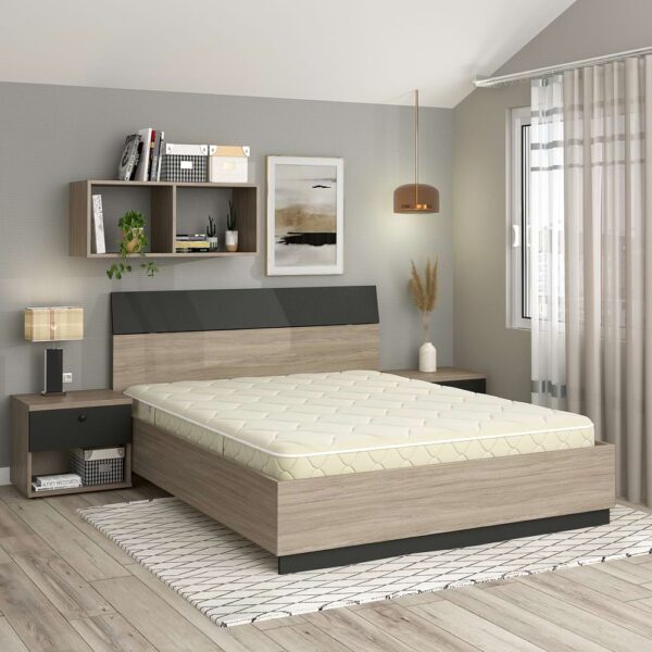 Oferta Pat matrimonial AMBRO, Oak, Antracit, cu saltea inclusa