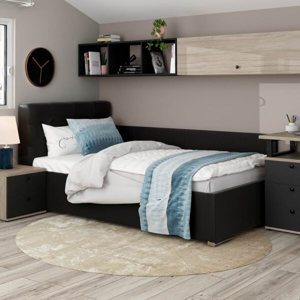 Pat colt de o persoana GEORGIA Clasic, 120×200, piele eco Neagra