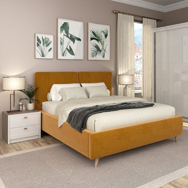Pat tapitat MONTELLO, 180×200, somiera rabatabila, catifea Galben Mustar