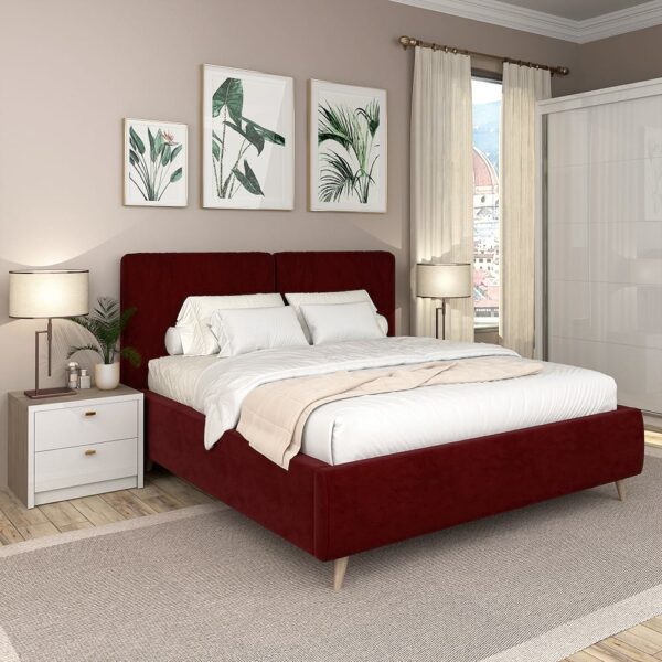 Pat tapitat MONTELLO, 140×200, somiera rabatabila, catifea Rosu Grena