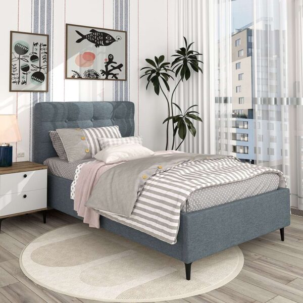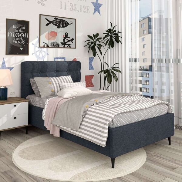 Pat tapitat MONTELLO, 140×200, somiera rabatabila, catifea Albastru
