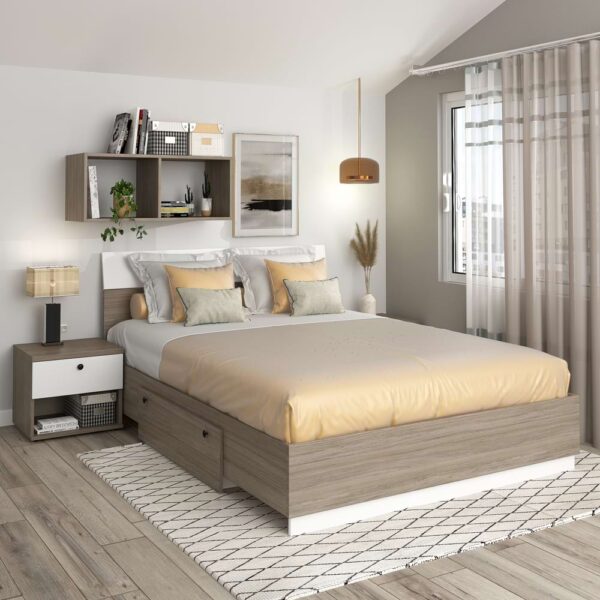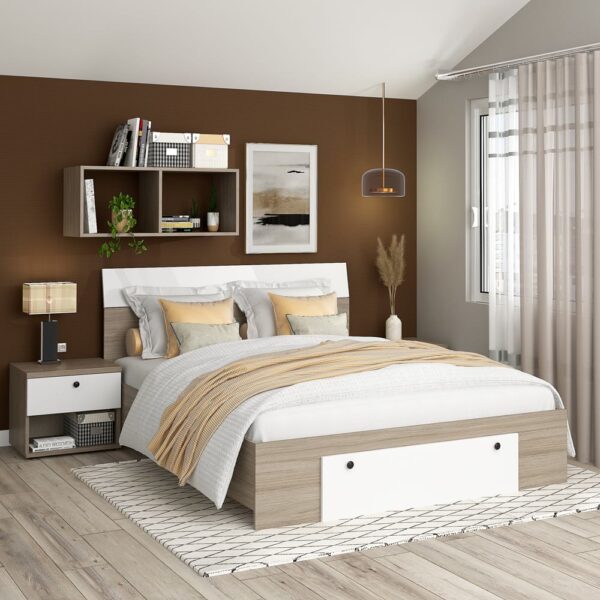Pat matrimonial AMBRO, 160×200, sertar frontal, Oak, Alb