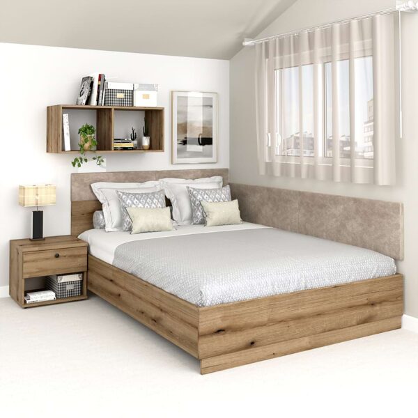 Pat matrimonial AMBRO, 160×200, sertar frontal, Oak, Pesto