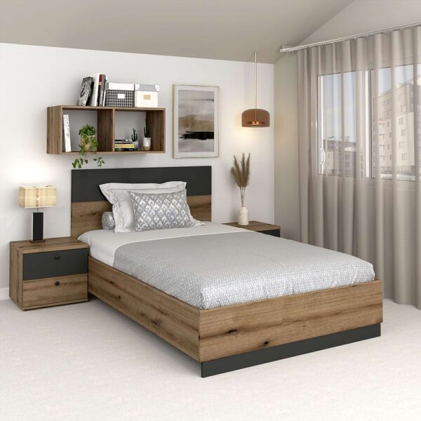Pat de o persoana AMBRO, 120×200, Stejar, Antracit