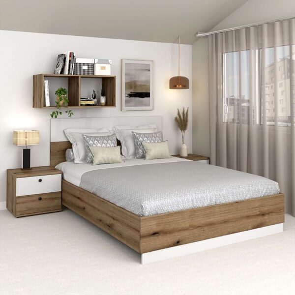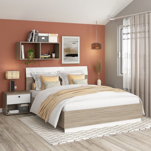 Pat matrimonial AMBRO, 140×200, Stejar, Alb