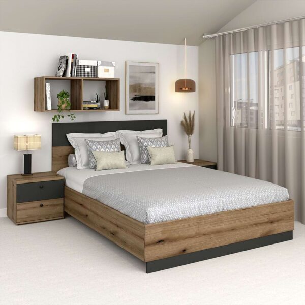 Pat matrimonial AMBRO, 140×200, Stejar, Antracit