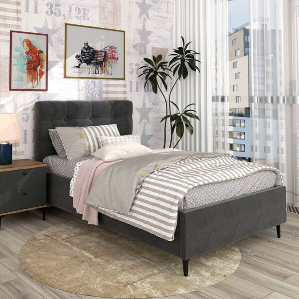 Pat tapitat de o persoana GEORGIA Pro, 120×200, H116, somiera, Catifea Gri