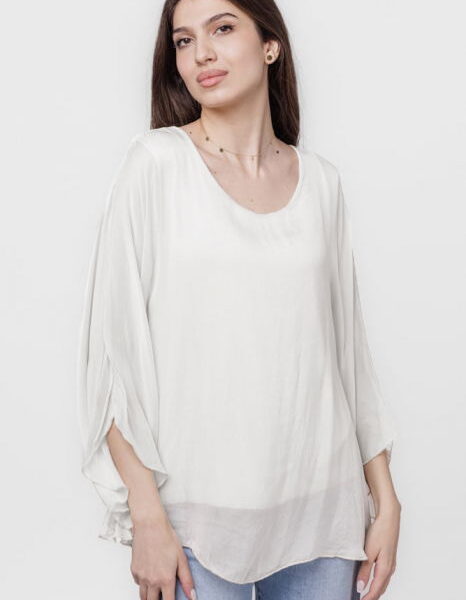 Bluza din matase si vascoza cu maneca clopot, alba
