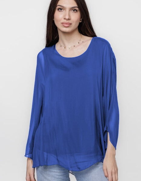 Bluza din matase si vascoza cu maneca clopot, albastru electric