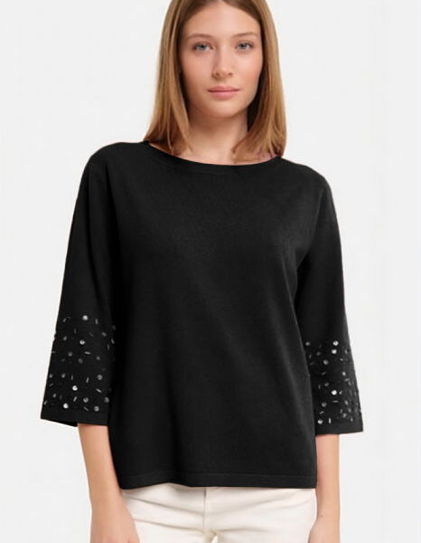 Pulover cu nasturei aurii pe decolteu si la maneci, albastru