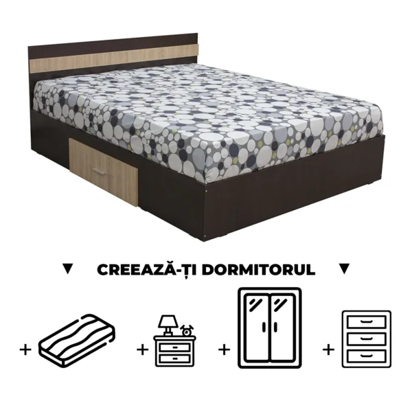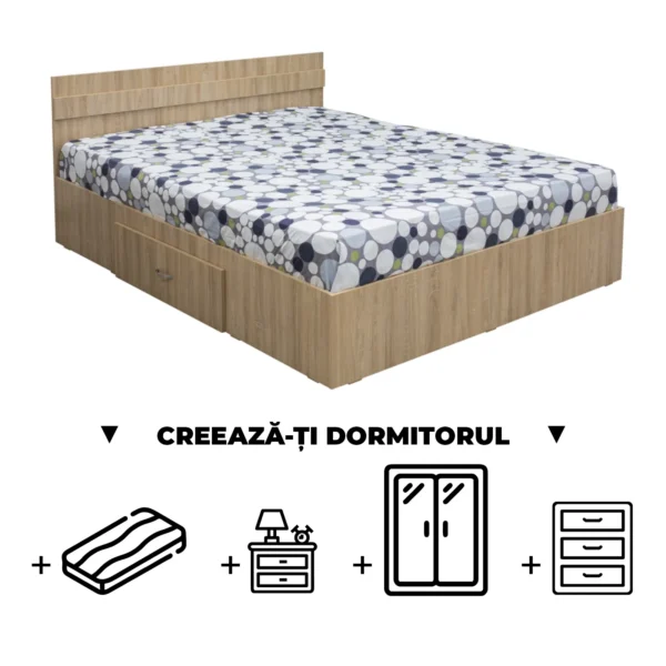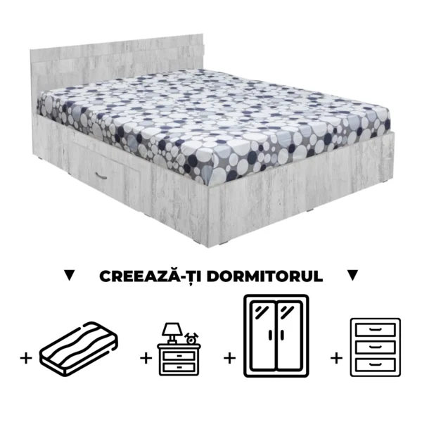 Set Pat Colt Alma, cu 2 sertare, alb + Saltea superortopedica, 160×200 cm