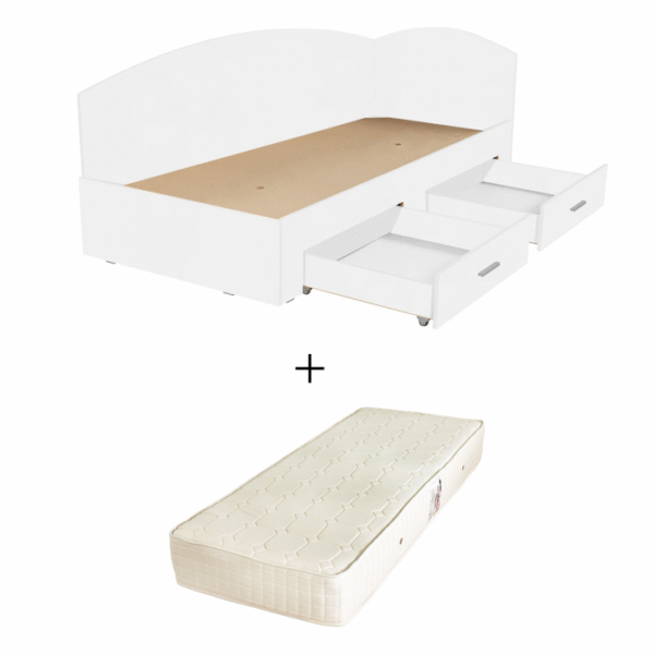 Set Pat Colt Alma, cu 2 sertare, alb + Saltea superortopedica, 90×200 cm