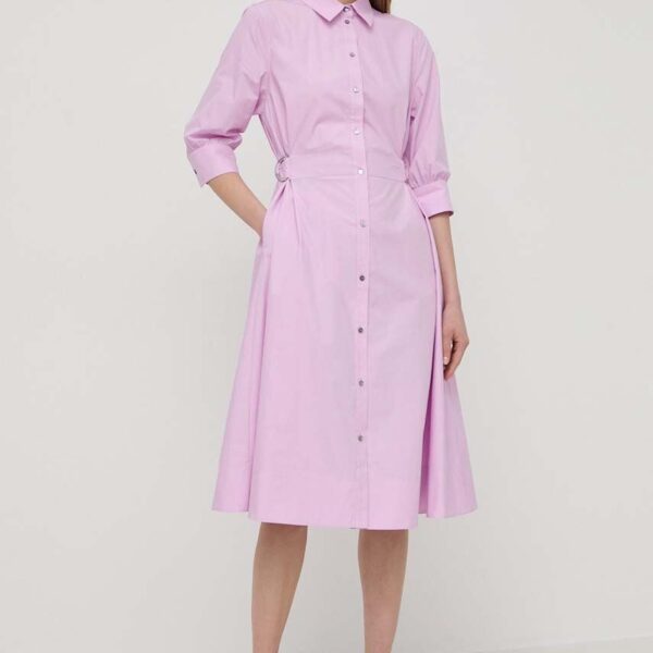 Karl Lagerfeld rochie in bumbac culoarea roz, ini, evazati