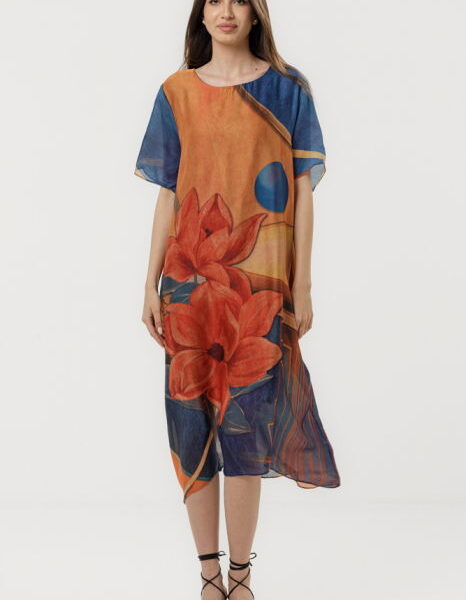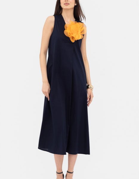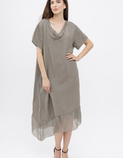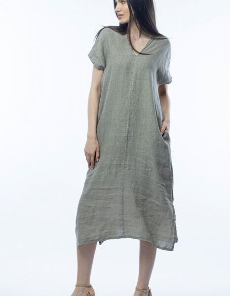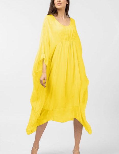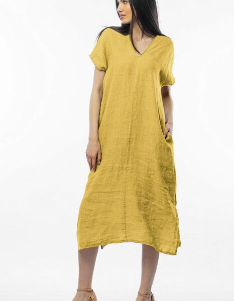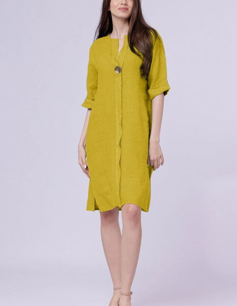 Rochie tunica din in galbena, cu nasture metalic decorativ