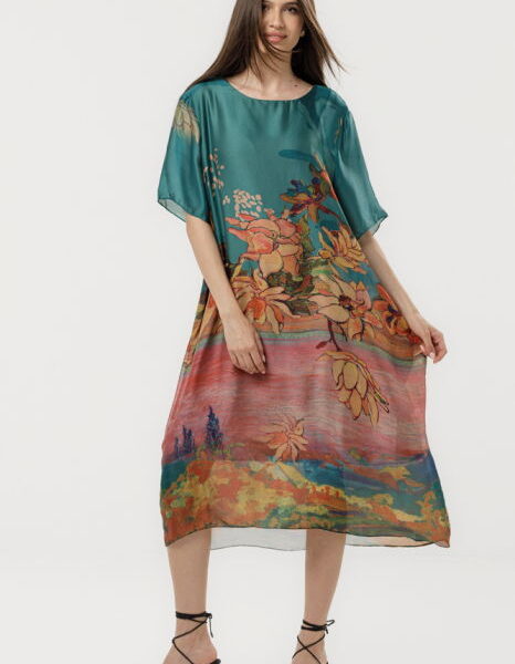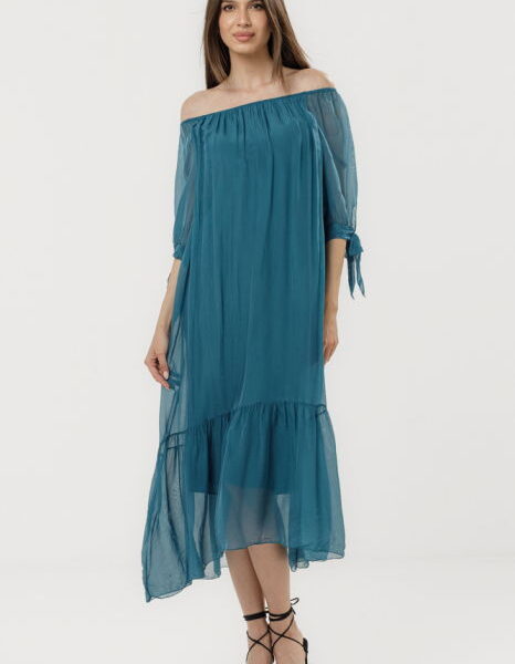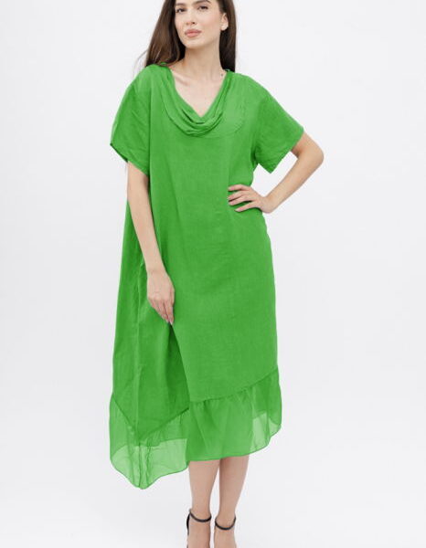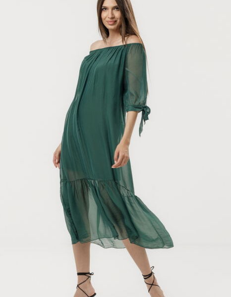 Rochie verde, din poplin de bumbac, cu noduri laterale