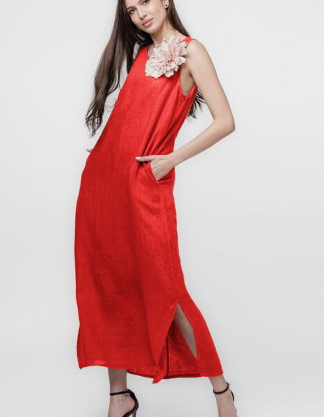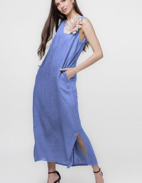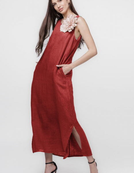 Rochie lunga A-line din in, fara maneci, rosiatic inchis