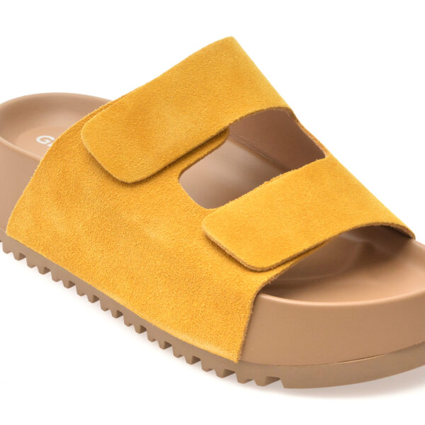 Prețul inițial a fost: 514,80 lei.429,00 leiPrețul curent este: 429,00 lei.Papuci GRYXX galbeni, 33719, din piele intoarsa