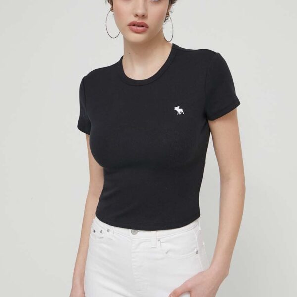 Abercrombie & Fitch tricou din bumbac femei, culoarea negru