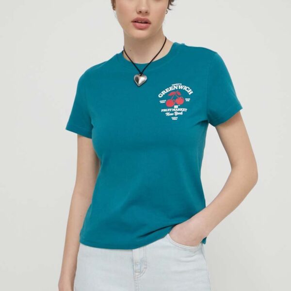 Tommy Jeans tricou din bumbac femei, culoarea turcoaz DW0DW17826