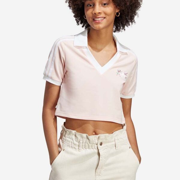 adidas tricou polo Crop femei, culoarea roz IP3757-pink